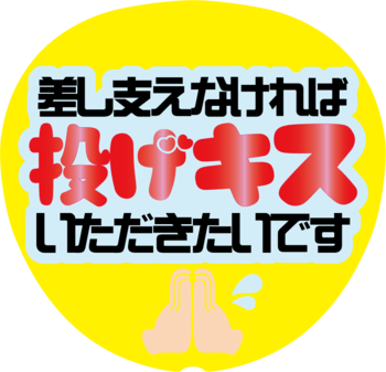 商品名:【デコプリ】差し支えなければ−綜−250724もじパラから新しく【デコプリ】が登場いたしました! ![]() クリップでうちわに固定したり、シート、うちわに穴をあけてカードリングで留めたりなど お好きな方法でご使用ください。 ジャンボうちわ型の印刷シートとなっているため、 お手持ちの応援うちわや、別売のジャンボうちわ の上からお使いいただけます。 【内容】デコプリ1枚(うちわは別売です) 【素材】コート紙 ※シールではありませんのでご注意ください。 【サイズ】W:約292mm H:約281mm ※ジャンボうちわにぴったりのサイズです こちらの商品は配送方法にネコポスをお選びいただいた場合、 サイズの関係上、お届け先の郵便受けの形状によっては投函出来ない場合がございます。 その場合は一旦持ち帰りとなりますので予めご了承ください。 ※持ち帰りとなった場合はお客様ご自身で再配達の手配をお願いいたします。 |